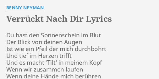 Verruckt Nach Dir Lyrics By Benny Neyman Du Hast Den Sonnenschein